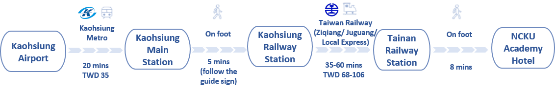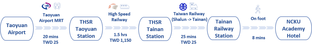 - After arriving at THSR Tainan Station, please take a taxi to NCKU Academy Hotel . (30-40 min)